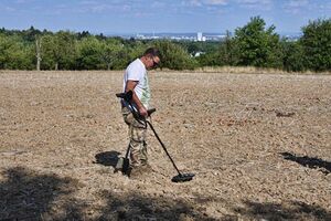 Sondengängert auf einem Acker